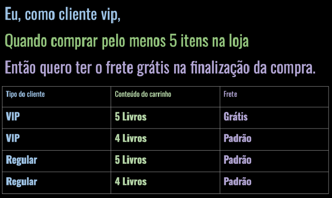 Passa a mesma informação mas estrutura ela em três partes: perfil do usuário, cenário e resultado esperado.