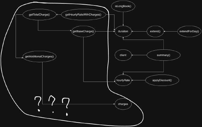 Podemos, por exemplo, criar uma classe com o nome BookingCharges que é responsável por saber calcular todos os custos envolvidos na reserva.