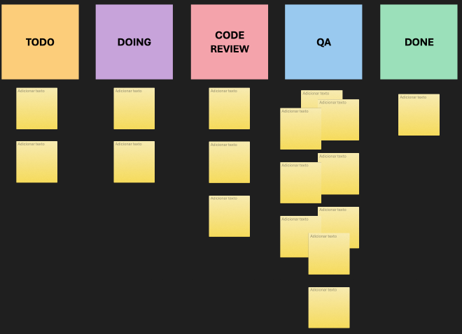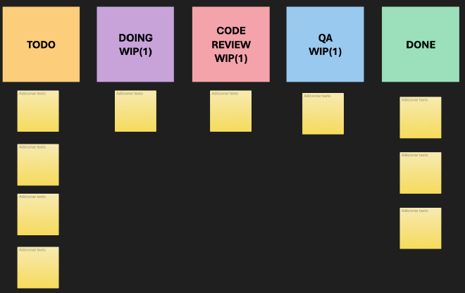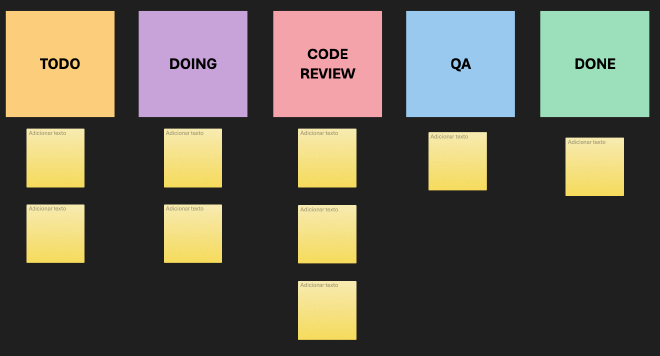 É muito comum, por exemplo, ver um kanban com as seguintes colunas: