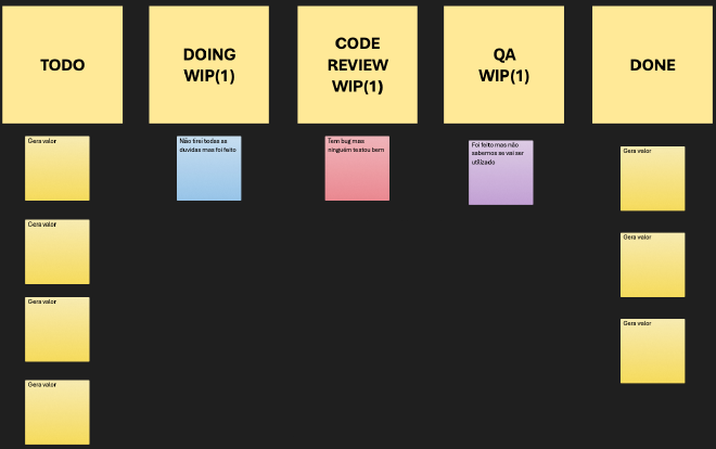 É muito comum, por exemplo, ver um kanban com as seguintes colunas: